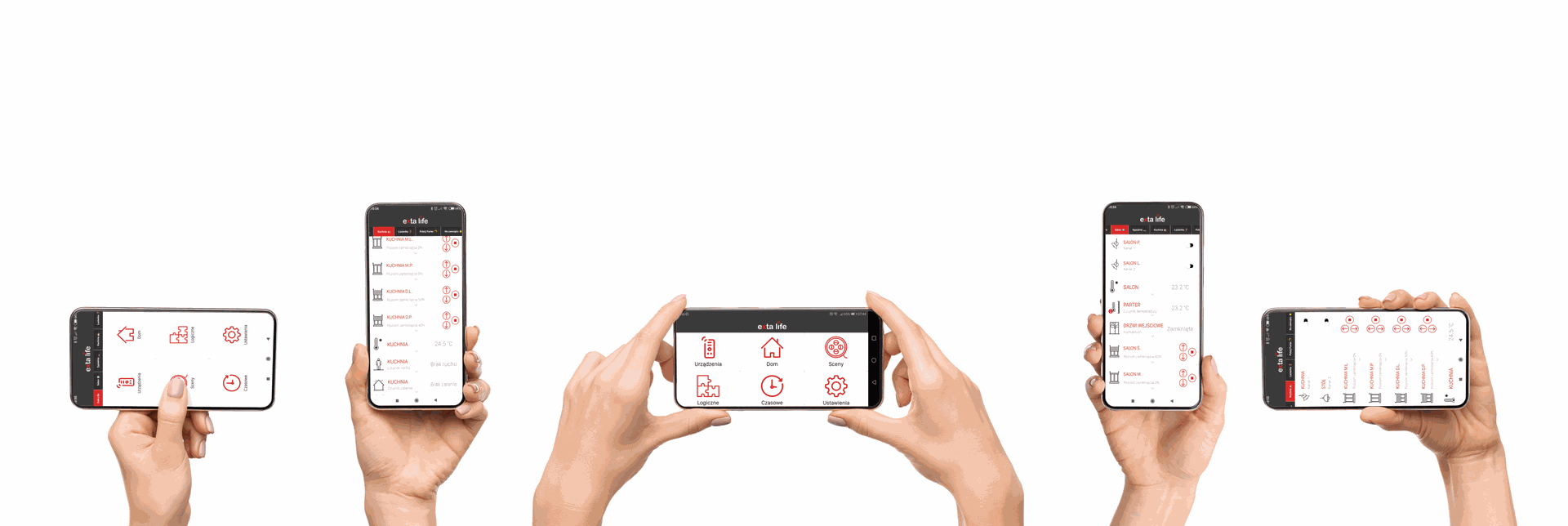 A casa inteligente EXTA LIFE significa controlo total sobre Os estores em todo o edifício. O aplicativo permite que gerencie estores divididos em níveis e assoalhadas do edifício. Os ícones visíveis na aplicação permitem descer/subir todos os estores com um clique. A opção de programar funções de temporização permite que os Utilizadores do sistema controlem as persianas de acordo com uma determinada programação. Os estores também podem ser gerenciados a partir dos transmissores EXTA LIFE e dos botões de pressão tradicionais